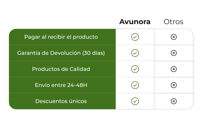 En Avuora nuestra priorirdad es la satisfacción del cliente. Por eso pagas al recibir tu pedido, hay garantia de devolución y los envíos son en 24-48h.